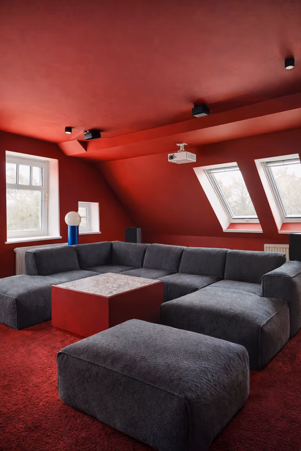 The new owners, a group of young Berliners, sought to reimagine the space with generous, shared rooms to suit their communal lifestyle: a home cinema, a spacious open kitchen, a cozy living area with a fireplace, an outdoor sauna, and a large dining table to bring everyone together.